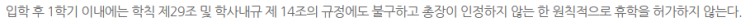 대부분의 다른 대학과 마찬가지로 입학 첫 학기에는 휴학 못 합니다.